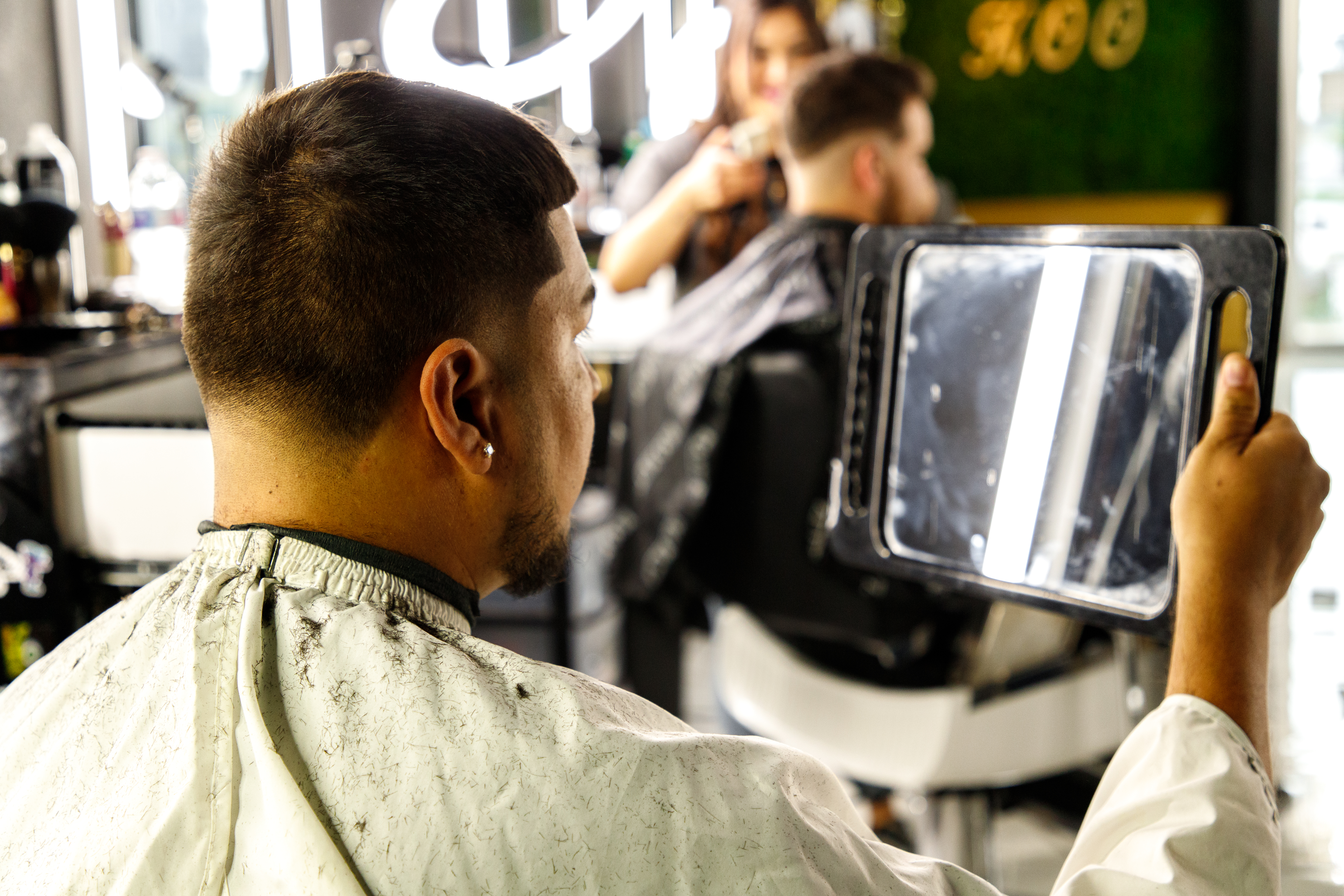 Revisión del espejo de la barbería